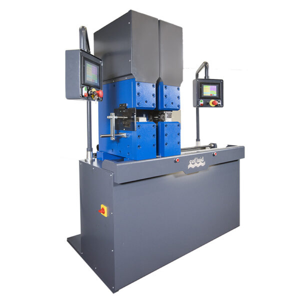 Double headed crimping machine with lateral opening and multilingual touch screen, ideal to crimp rigid hoses with flexible hoses up to 1/2″ R2.